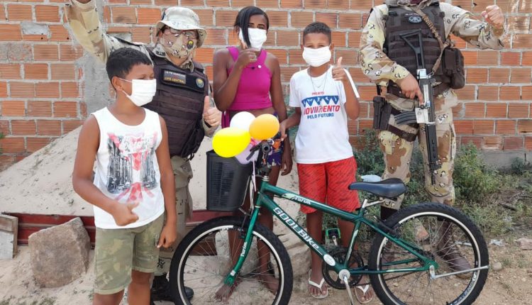 Na tarde de ontem (11), a PMBA, através da CIPE CENTRAL realizou o *PROJETO SORRISO DE ANJO*, em comemoração ao Dia das Crianças, como parte de mais uma ACISO no ano de 2021. A presente campanha conseguiu arrecadar 170 brinquedos, entre estes, 02 bicicletas. O projeto contemplou cerca de 336 crianças, de famílias em situação de vulnerabilidade social, das localidades e instituições sociais:
